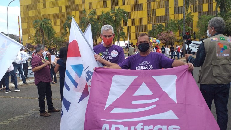 A ADUFRGS-Sindical junto ao PROIFES-Federação, entidades sindicais e servidores públicos intensificam a mobilização em Brasília contra a aprovação da PEC 32/2020, da reforma administrativa, prevista para ser votada ainda nesta terça-feira, 28, pela Câmara Federal. Os professores associados, Paulo César do Nascimento, da Faculdade de Agronomia da UFRGS, e Mack Léo Pedroso, do IFSul Campus Sapucaia do Sul, representam o sindicato nas manifestações feitas na capital federal. A estratégia é ampliar a pressão junto aos deputados federais para que a proposta não seja aprovada no plenário da Câmara, após o texto do relator Arthur Maia (DEM-BA) ter passado pela comissão especial com 28 votos a favor e 18 contrários.