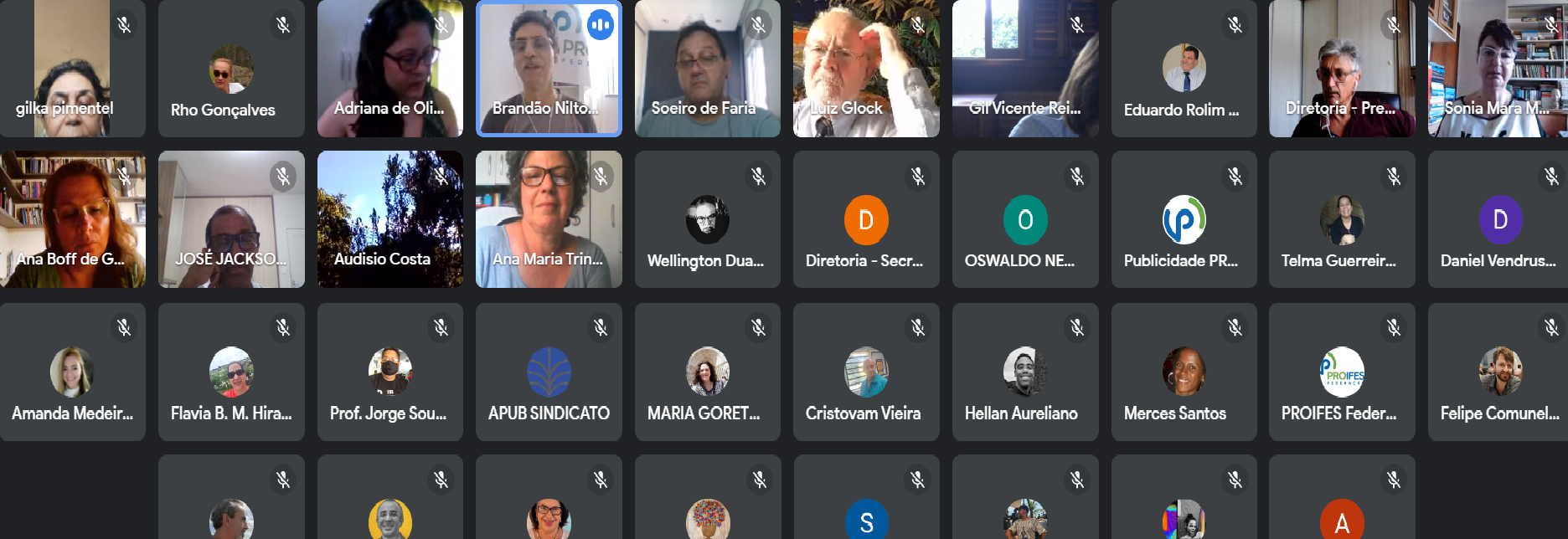 Na tarde desta sexta-feira, 5, a delegação da ADUFRGS-Sindical contribuiu com o debate do Eixo IV “Organização do movimento sindical frente aos novos desafios”, que encerrou a programação do XVII Encontro Nacional do PROIFES-Federação. Durante o encontro virtual, o presidente do PROIFES, Nilton Brandão, e o presidente da ADUFRGS-Sindical, Lúcio Vieira, apresentaram textos para subsidiar as discussões.