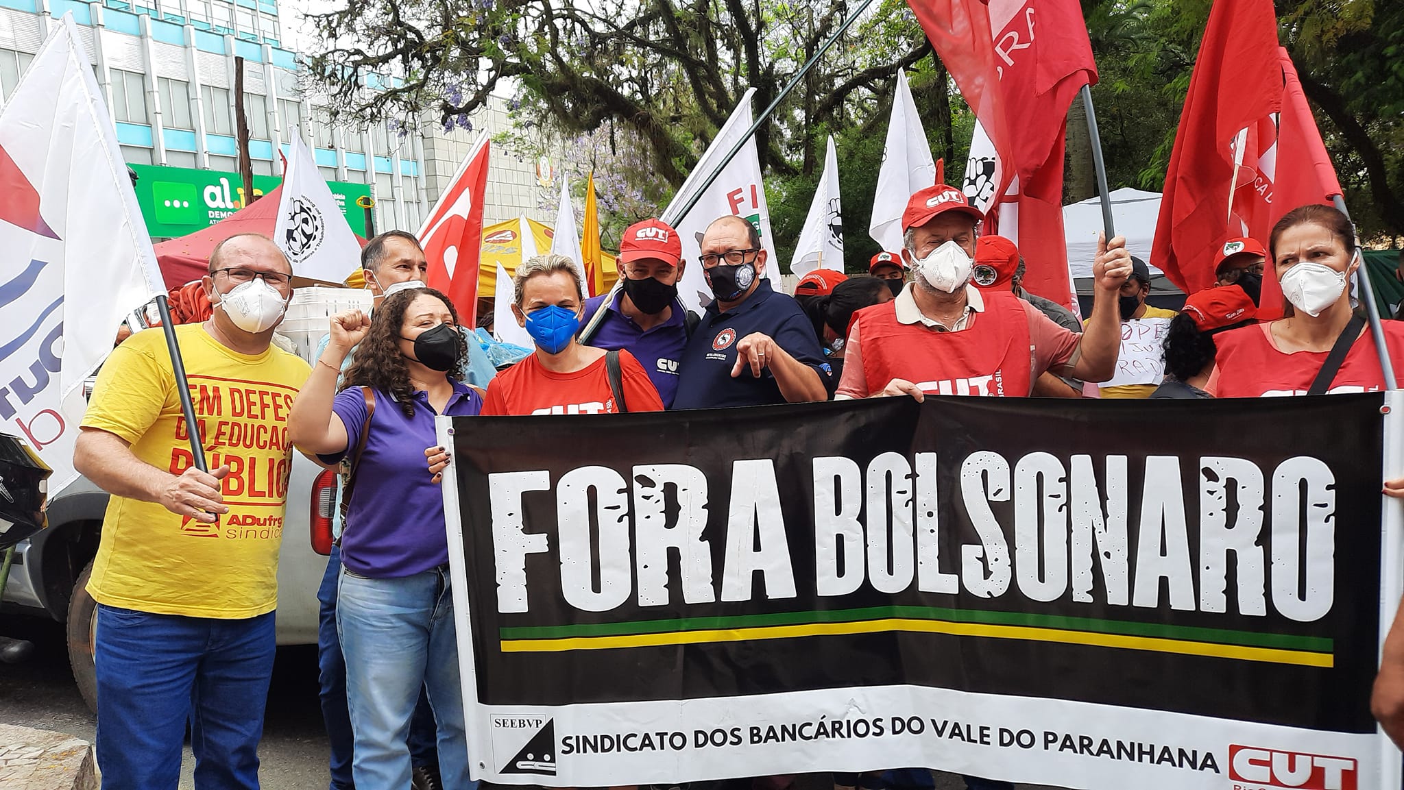 O ato reuniu servidores públicos, principalmente do magistério, e representantes do Movimento dos Trabalhadores Rurais Sem Terra (MST), da Federação dos Trabalhadores na Agricultura Familiar da Região Sul (FetrafSul), do Movimento dos Pequenos Agricultores (MPA), do Movimento dos Atingidos por Barragens (MAB), Movimento dos Trabalhadores Desempregados (MTD), Mulheres Camponesas, Unicafes, Consea-RS e Multiplicidade, bem como a CUT Comunidade, que desenvolve ações de solidariedade e inclusão social para famílias da periferia da capital gaúcha.
