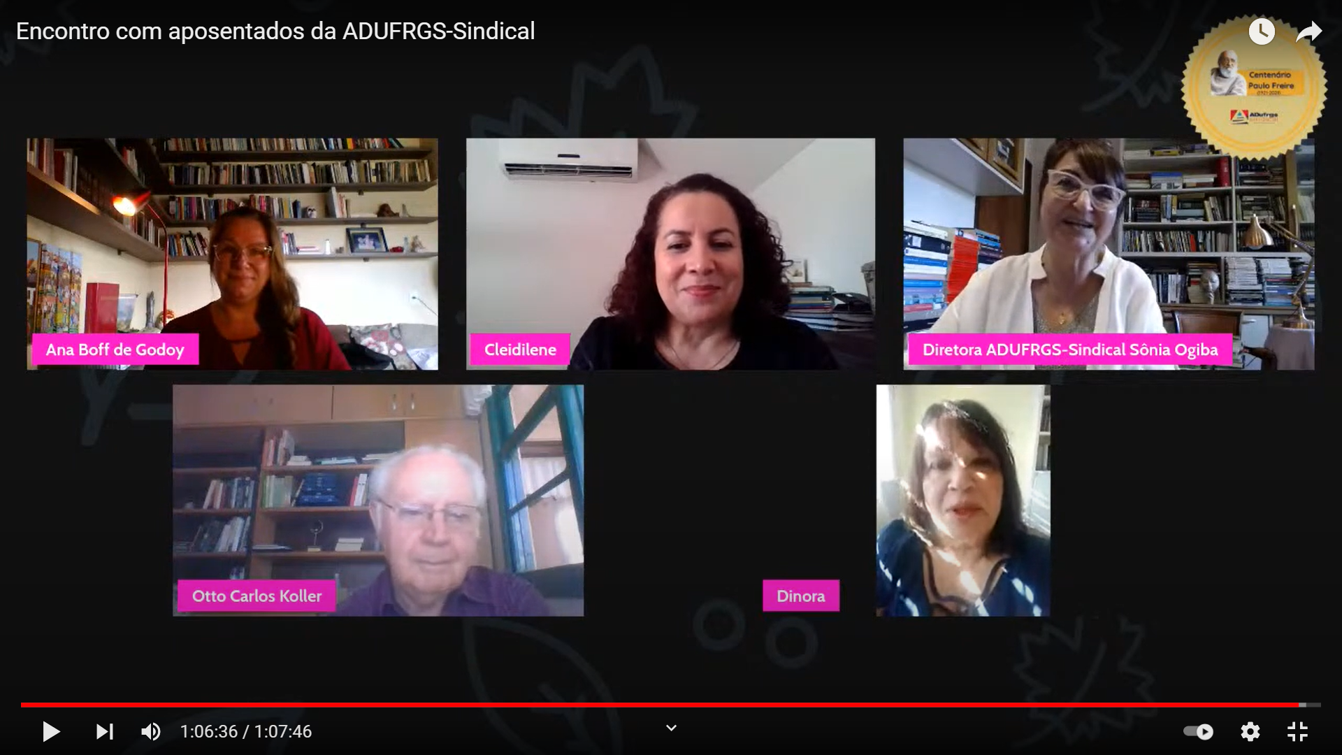 O encontro virtual transmitido ao vivo pelo YouTube e Facebook do sindicato contou com a palestra das professoras e palestrantes Ana Boff de Godoy e Cleidilene Ramos Magalhães, ambas da Universidade Federal de Ciências da Saúde (UFCSPA). A mediação do debate foi feita pela professora aposentada Dinorá Fraga, da FACED-UFRGS.