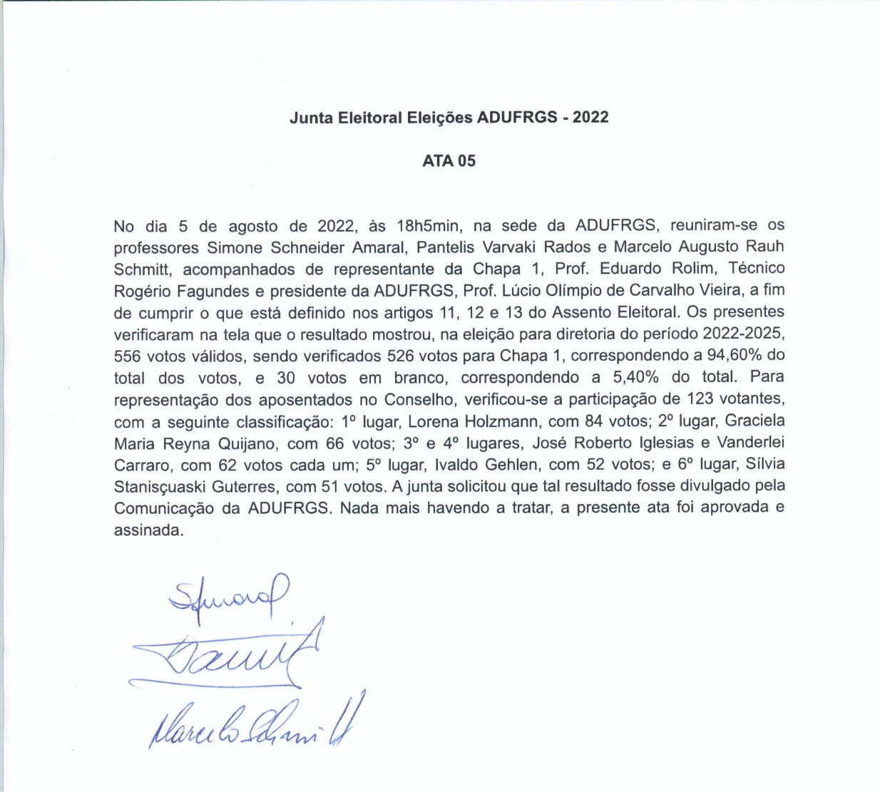 Junta Eleitoral Eleições ADUFRGS-Sindical 2022 – ATA 05