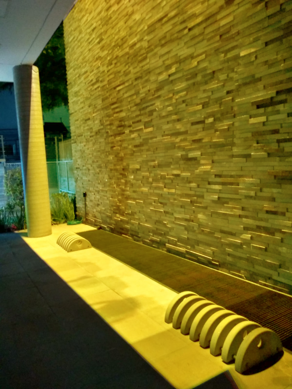 Legenda das fotos: Fachada e sede da Barão do Amazonas iluminadas de amarelo.