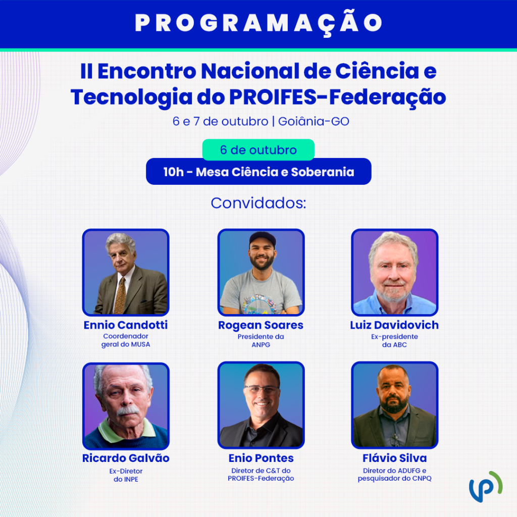 A PROIFES-Federação promove, nos dias 6 e 7 de outubro, o II Encontro Nacional de Ciência e Tecnologia. Com o tema “Políticas de Ciência e Tecnologia para a reconstrução do Brasil”, o evento será realizado na sede do Sindicato dos Docentes das Universidades Federais de Goiás (Adufg-Sindicato), em Goiânia (GO).