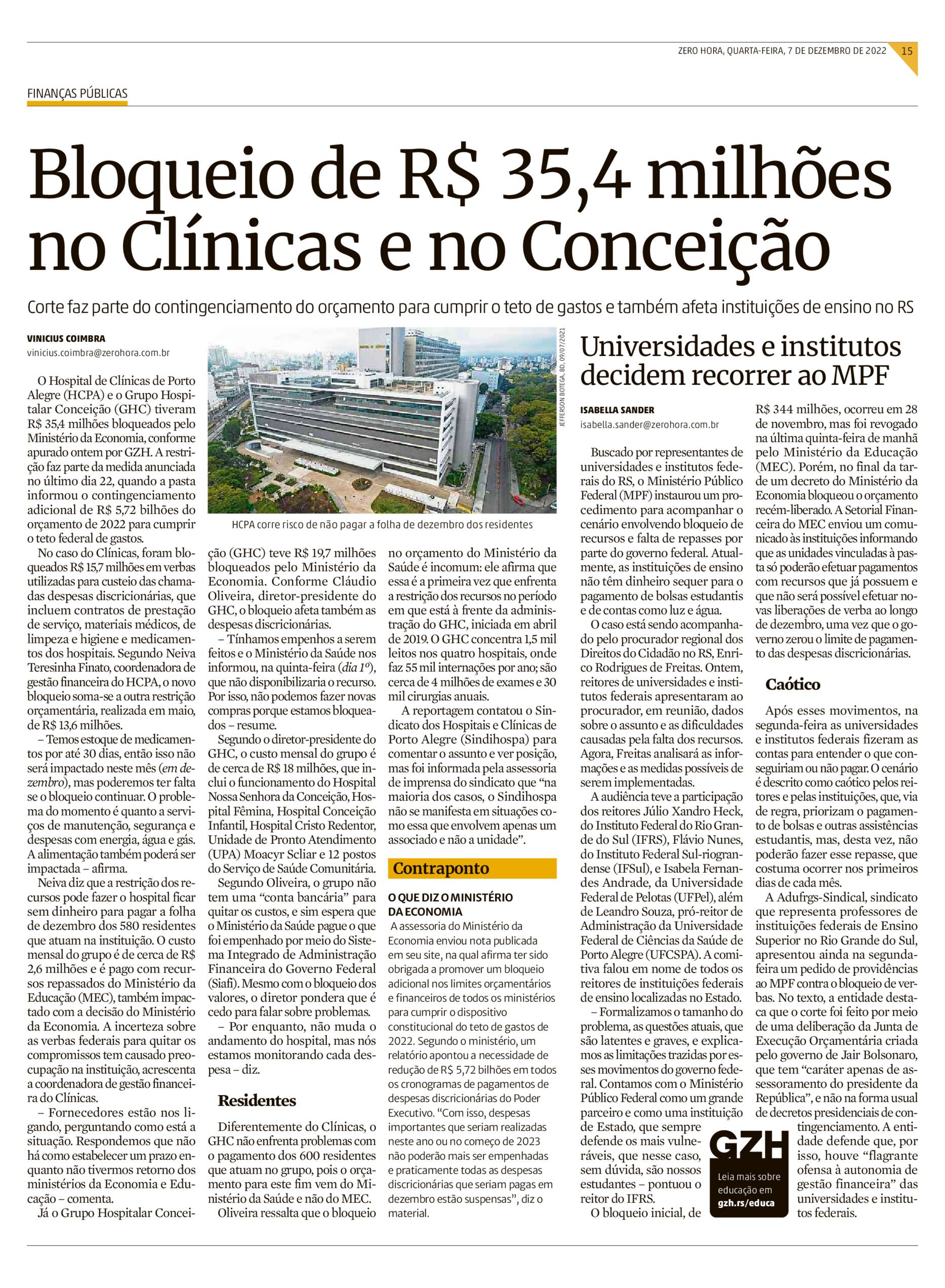 O novo corte feito pelo governo federal foi repleto de idas e vindas. O bloqueio inicial ocorreu no dia 28 de novembro, mas foi revogado na última quinta-feira (1º) de manhã pelo Ministério da Educação (MEC). No final da tarde, porém, um decreto do Ministério da Economia bloqueou o orçamento recém liberado. A Setorial Financeira do MEC enviou um comunicado às instituições informando que as unidades vinculadas à pasta só poderão efetuar pagamentos com recursos que já possuem e que não será possível obter novas liberações de verba ao longo de dezembro, uma vez que o governo zerou o limite de pagamento das despesas discricionárias.