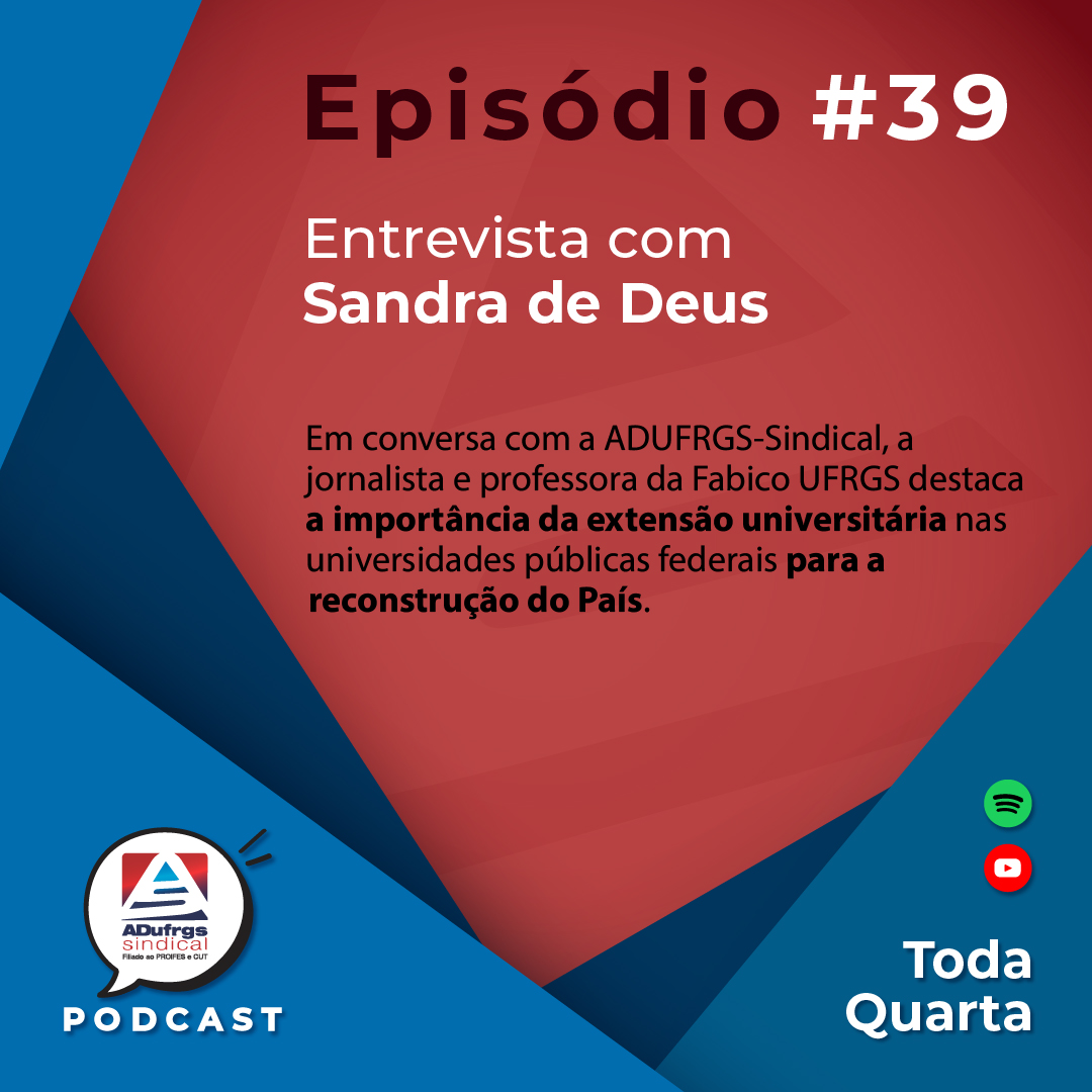 O primeiro podcast de 2023 da ADUFRGS-Sindical traz uma entrevista com a jornalista e professora da Faculdade de Biblioteconomia e Comunicação (Fabico) UFRGS, Sandra de Deus.