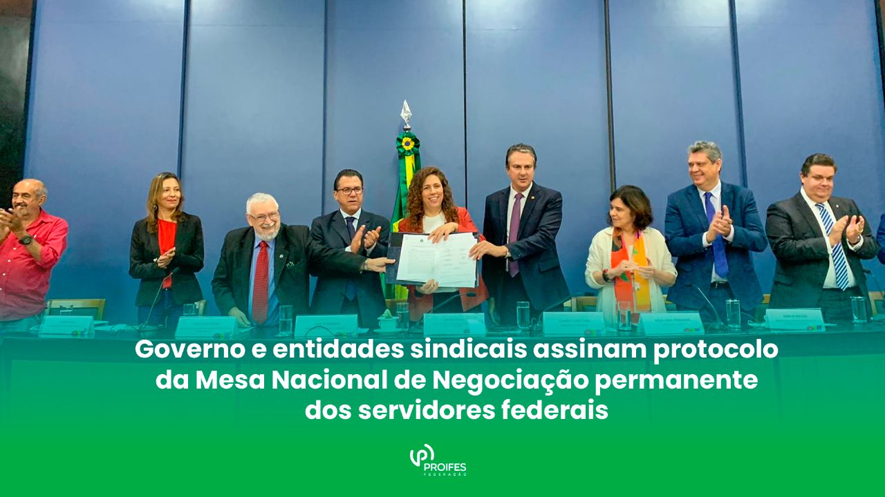 Na manhã desta terça-feira (11) as entidades representativas dos servidores públicos federais, dentre elas o PROIFES-Federação, e representantes das nove pastas do governo que compõem a Mesa Nacional de Negociação Permanente (MNNP) assinaram a portaria com o protocolo e o regimento interno da MNNP.