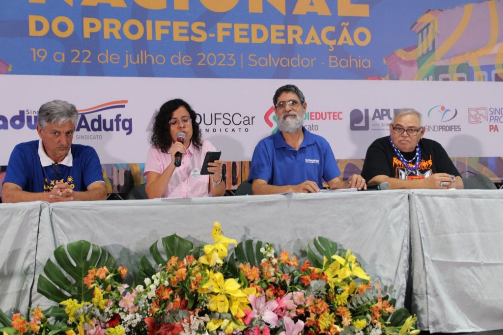 Foi aprovada ainda, a Moção de Repúdio contra as Altas Taxas de Juros praticadas no País pelo Banco Central Independente de Roberto Campos Neto, proposta pelo professor Jairo Bolter, presidente da ADUFRGS-Sindical. Conforme aclamado pelo plenário, será construída ainda a Carta de Salvador.