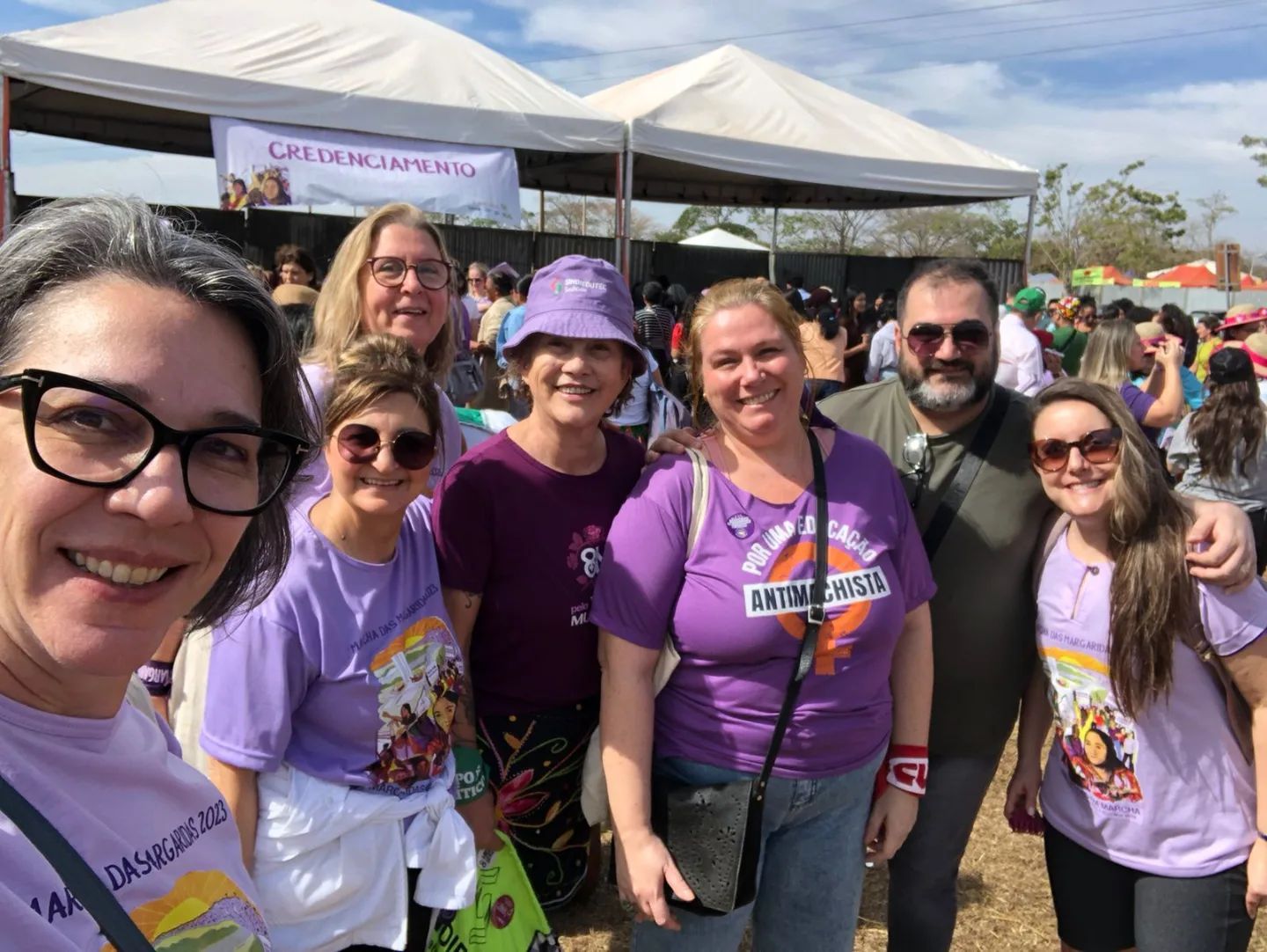 A ADUFRGS-Sindical está em Brasília, junto ao PROIFES-Federação e seu GT Direitos Humanos, participando da 7ª Marcha das Margaridas, que acontece nesta terça e quarta-feira, 15 e 16. A marcha completa 23 anos desde a primeira edição que ocupou a capital federal para lutar contra a pobreza e a violência sexista. A diretoria do Sindicato está representada pela sua vice-presidente, Ana Boff de Godoy, e pela diretora de Secretaria, Regina Witt. Também participam das atividades na capital federal as professoras Luciana Nunes e Sônia Ogiba, respectivamente presidente e vice do Conselho de Representantes da ADUFRGS, e a professora Gisele Orlandi Introíni. A vice-presidente destacou “a importância da participação política das mulheres na reconstrução do Brasil para o bem-viver”.