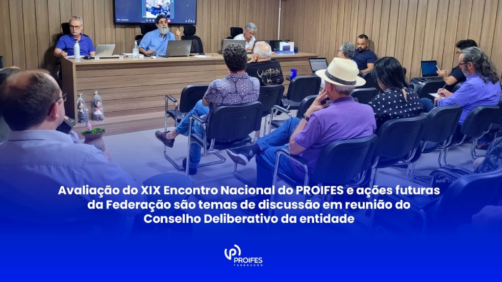 Os membros do Conselho Deliberativo realizaram uma longa discussão a respeito do Encontro Nacional do PROIFES, foi colocado em pauta o formato do Encontro e as expectativas futuras para os próximos anos. Como encaminhamento principal foi designada a criação de uma comissão de organização específica para o evento.