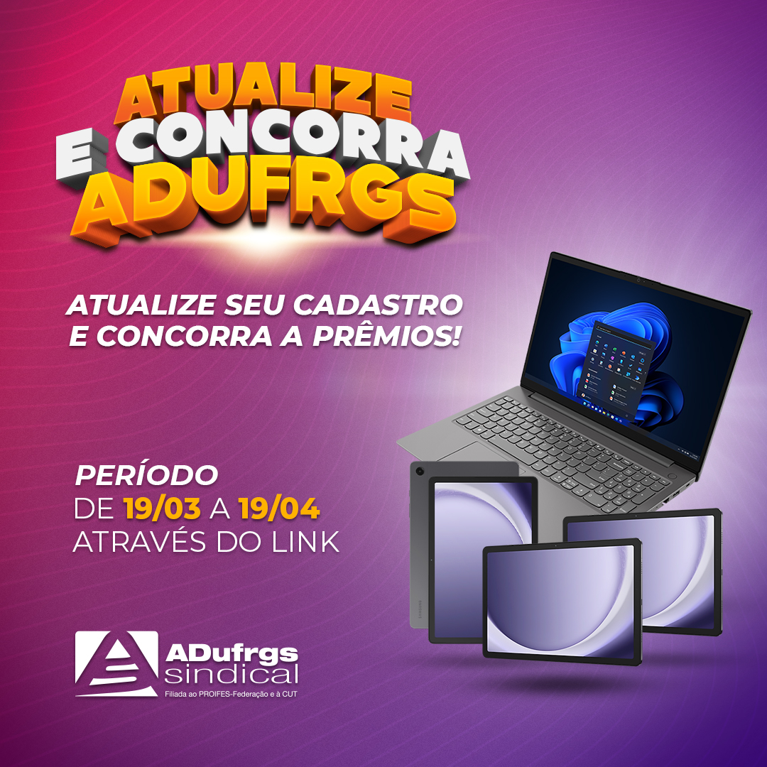 Faça seu recadastramento na ADUFRGS-Sindical e concorra a brindes