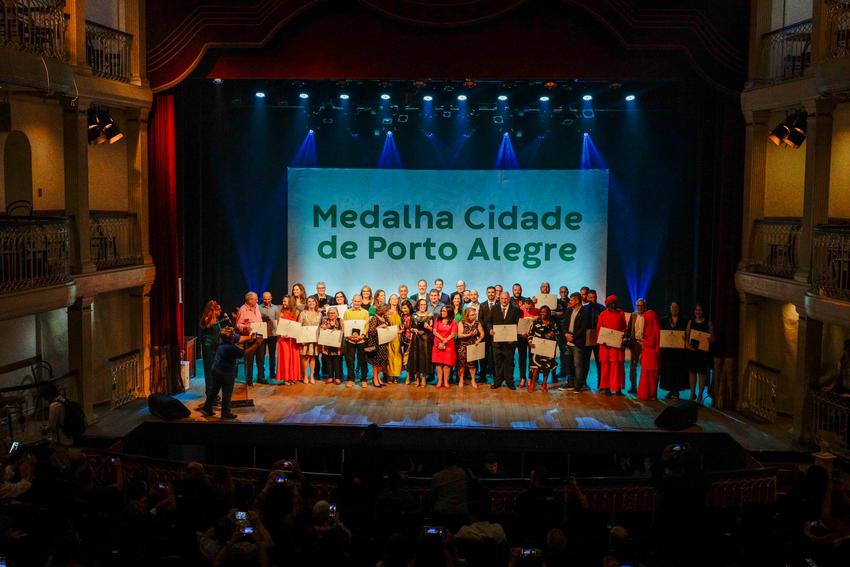 A reitora da Universidade Federal de Ciências da Saúde de Porto Alegre (UFCSPA), professora Lucia Pellanda, filiada da ADUFRGS-Sindical, foi homenageada com a Medalha Cidade de Porto Alegre. A cerimônia se repete há 47 anos e foi realizada no Theatro São Pedro nesta terça-feira, 26, data em que a Capital comemorou 252 anos. Nesta edição foram homenageadas 32 personalidades, empresas e instituições que tiveram participação relevante no desenvolvimento social, cultural e econômico da cidade (veja relação completa aqui). A reitora foi representada pela vice-reitora, professora Jenifer Saffi, também filiada da ADUFRGS-Sindical.