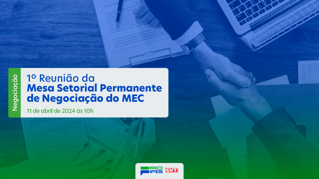 A 1ª reunião da Mesa Setorial Permanente de Negociação do MEC será realizada na próxima quinta-feira, dia 11, às 10h, na sede do Ministério da Educação. No documento, o Secretário-Executivo ressalta que “compete à Mesa Setorial organizar o debate em torno das pautas apresentadas pelas bancadas e dar encaminhamento às tratativas coletivas de caráter específico, sem impacto orçamentário”, e que “poderá encaminhar proposta ao MGI [Ministério da Gestão] para abertura de mesa específica ou temporária, no caso das demandas que tenham impacto orçamentário, sem prejuízo da iniciativa das entidades em apresentar suas pautas”.