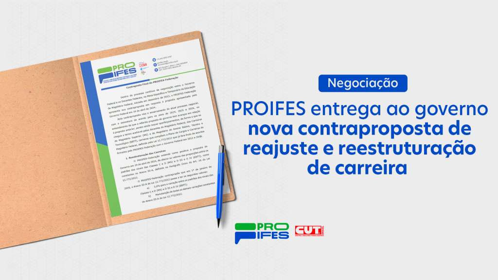Em resposta ao que foi apresentado pelo Governo no último dia 19 e seguindo o processo de negociação, o PROIFES Federação entregou nesta terça-feira (30) ao Governo Federal uma nova contraproposta.