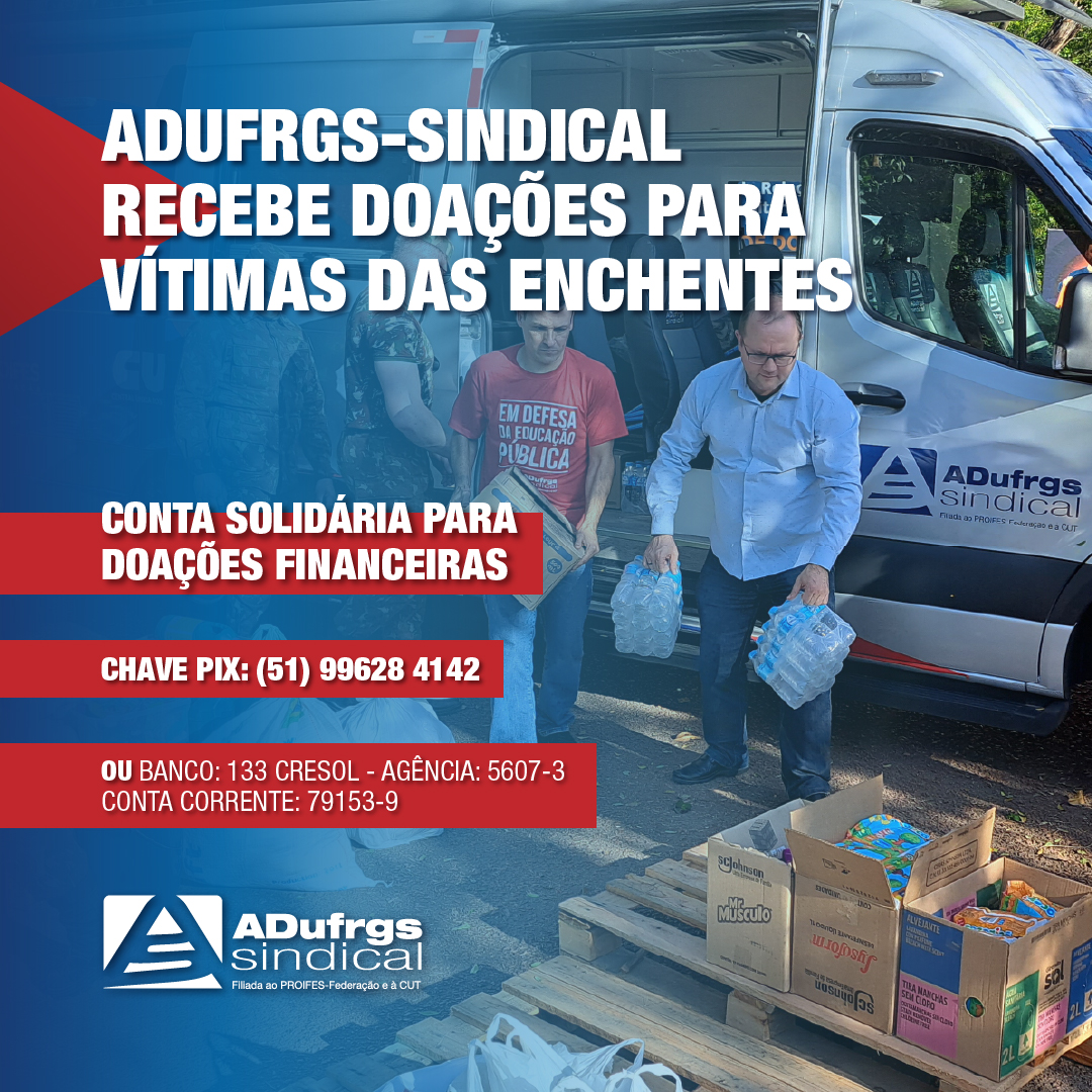 Novamente, a ADUFRGS-Sindical realiza ação para ajudar quem mais precisa. Contamos com a sua solidariedade!