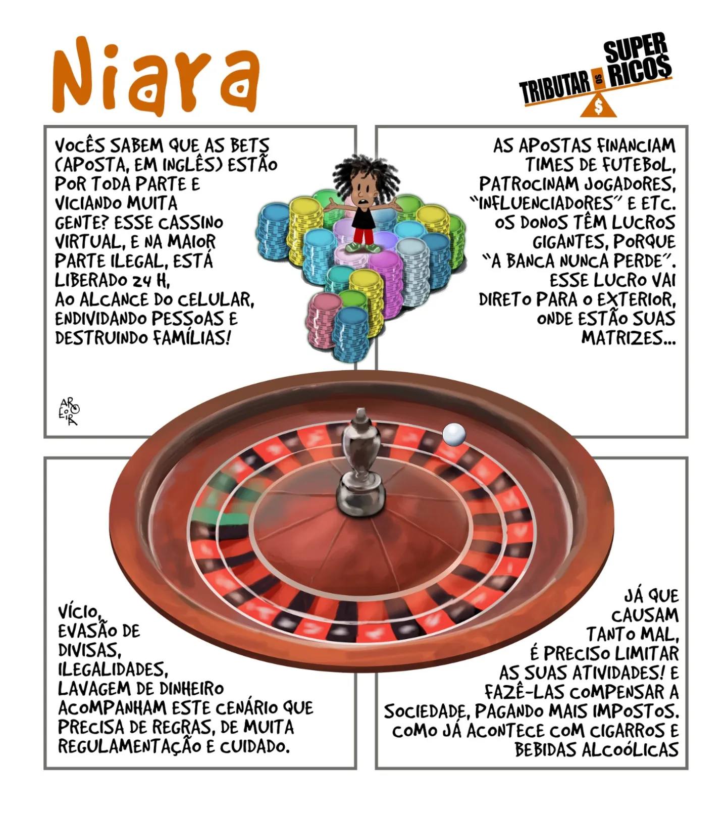 As tiras de Niara são publicadas todas as sextas-feiras no site do Sindicato e em suas redes sociais