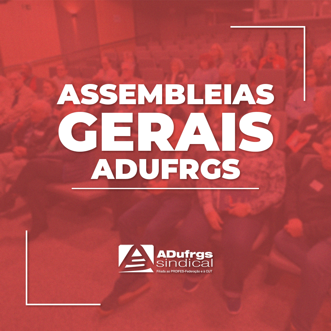 A AGE ocorre em seguida, também na próxima sexta-feira (01/11), às 13h, em formato híbrido, pela plataforma Zoom Cloud Meetings e presencial no auditório da ADUFRGS-Sindical (Rua Barão do Amazonas, 1581 – Jardim Botânico). Para participação virtual, o link será disponibilizado 1h antes do início da assembleia.
