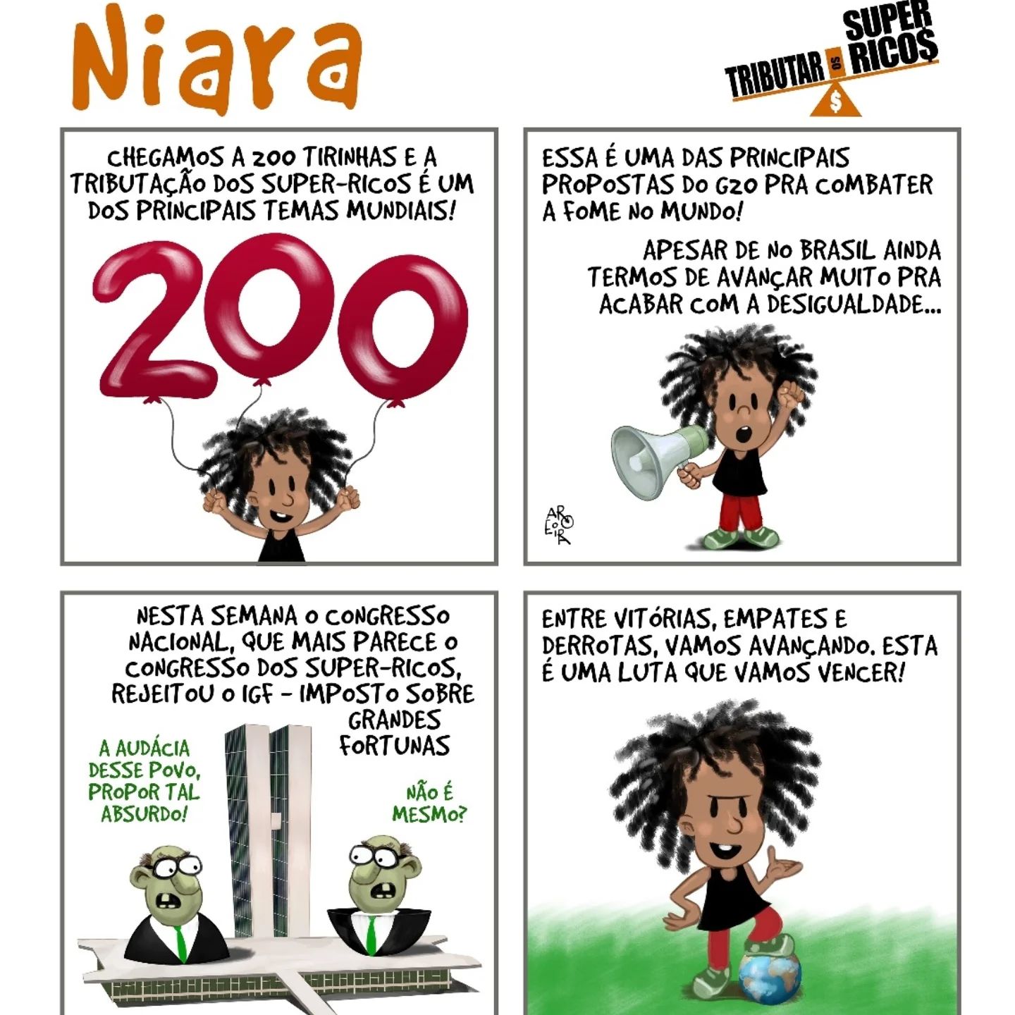 2️⃣0️⃣0️⃣ Esta é a tirinha de número 200!!! E todas podem ser vistas e acessadas no www.ijf.org.br/niara. Uma boa caminhada com muitos apoios, debates, derrotas e avanços!