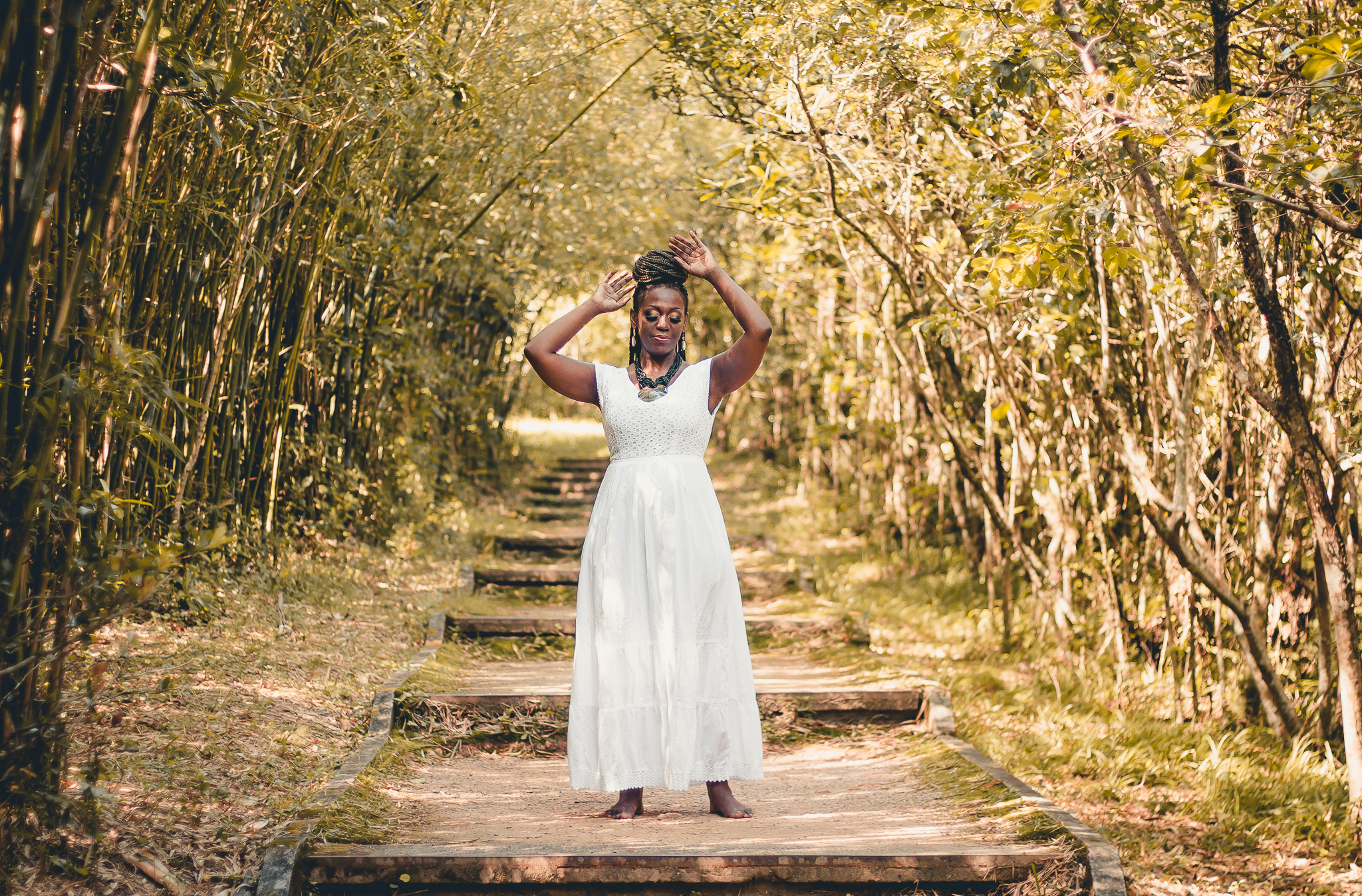 O show apresenta um formato minimalista, com voz, violão e pandeiro no sentido de realçar uma grandiosidade ritual. Cada elemento sonoro em cena se multiplica em sonoridades, como o canto espiritual, a harmonia envolvente do violão e a batida ritual do pandeiro evocam juntos a ancestralidade africana que tanto influenciou à cultura brasileira.