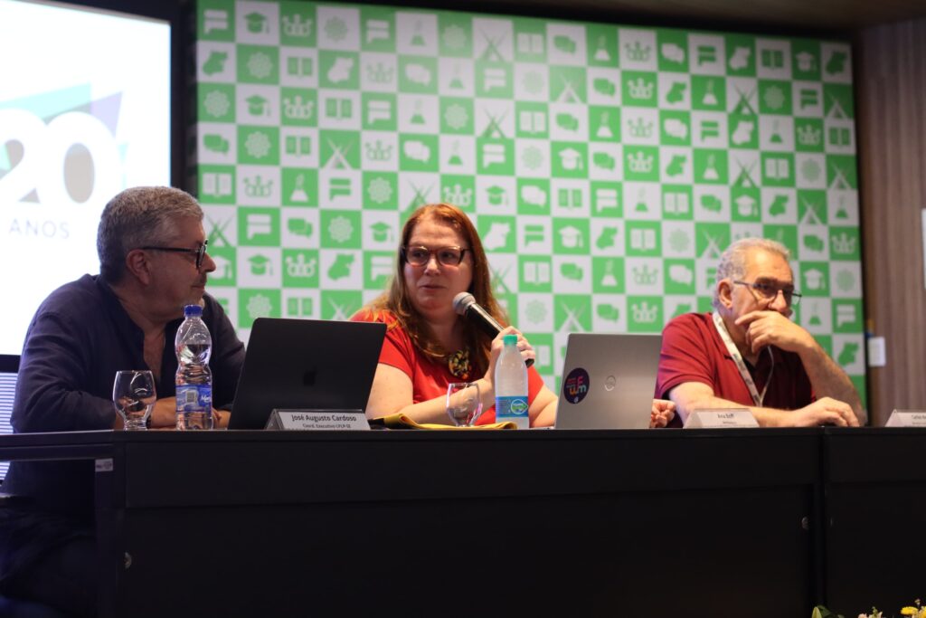 Nesta quinta-feira (21), o primeiro dia de discussões do XX Encontro Nacional do PROIFES-Federação teve início com as atenções voltadas para o contexto mundial da luta em defesa da educação. Mediada pela diretora de assuntos sindicais e relações internacionais do PROIFES-Federação e vice-presidenta da ADUFRGS-Sindical, Ana Boff de Godoy, a mesa internacional contou com exposição do secretário-geral da Confederação Sindical da Educação dos Países de Língua Portuguesa (CPLP-SE), José Augusto, e do secretário geral da Federação Nacional de Docentes Universitários da Argentina (CONADU) e representante da Internacional da Educação para a América Latina (IEAL), Carlos de Feo.