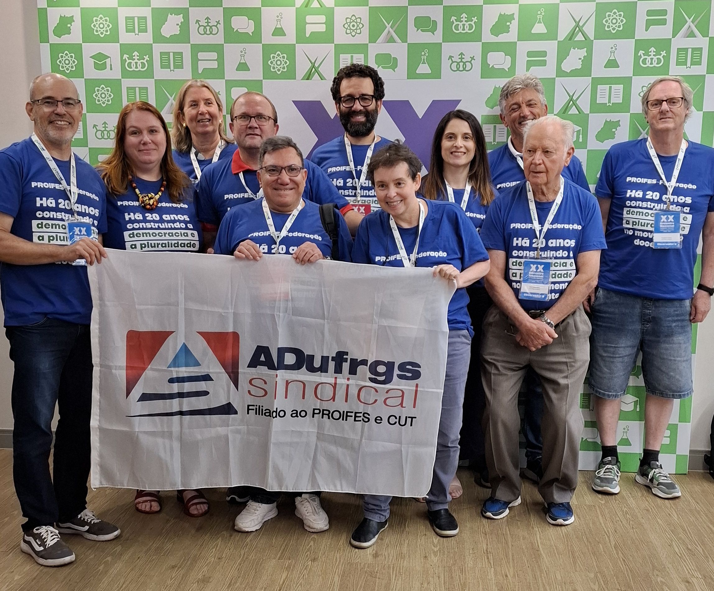 Com uma delegação de 11 pessoas, entre delegados eleitos e observadores, a ADUFRGS-Sindical participou de forma destacada do XX Encontro Nacional do PROIFES-Federação, realizado de 20 a 22 de novembro em Goiânia, na sede da Adufg. O grupo mediou debates, apresentou propostas, registrando mais um ano de participação destacada no evento.