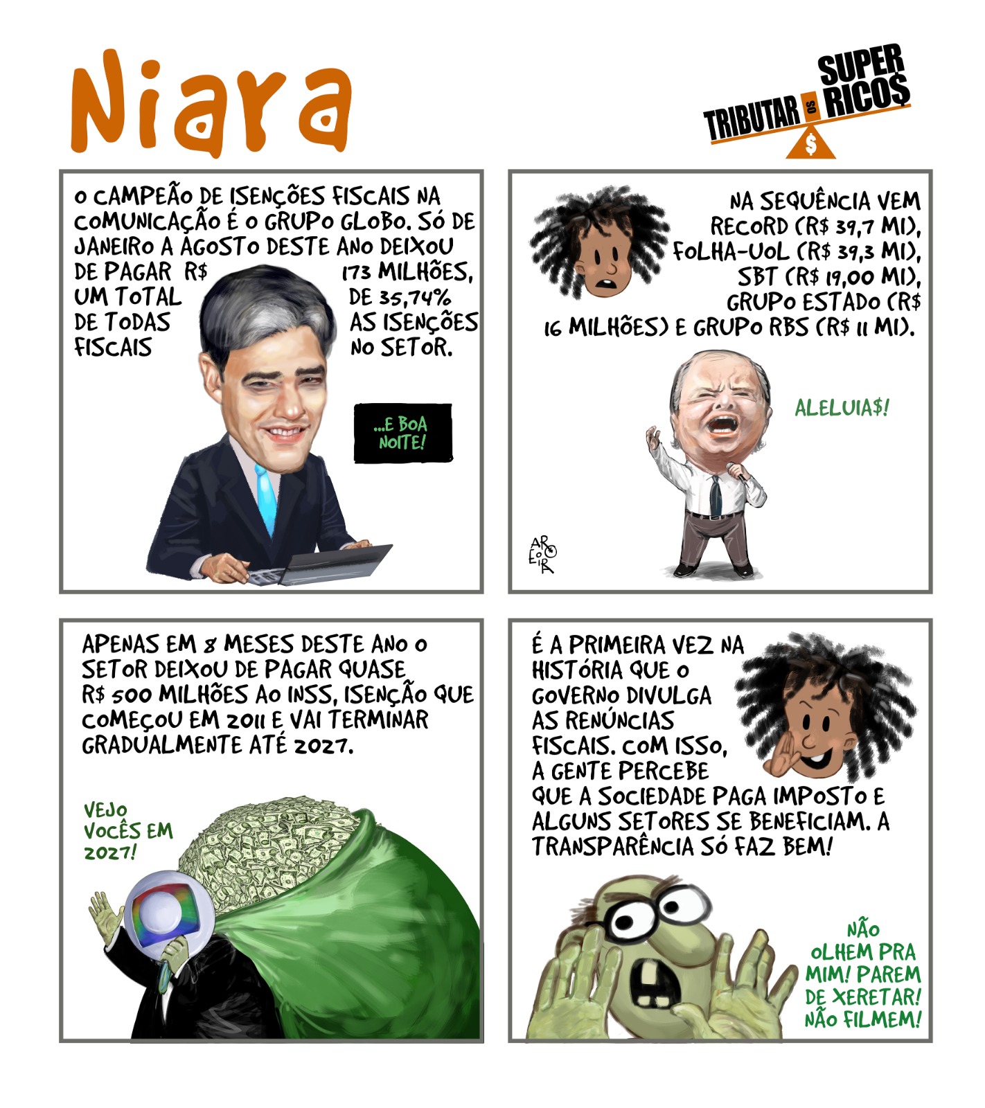 ☝🏽 O grupo Globo lidera as isenções fiscais no setor! Só de janeiro a agosto deste ano deixou de pagar R$ 173 milhões de desoneração de INSS.