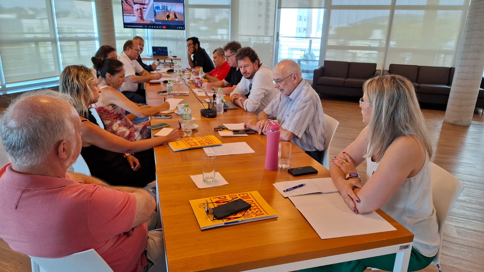 O encontro aconteceu na sede do Sindicato com a participação: do presidente da ADUFRGS-Sindical, Jairo Bolter, do diretor Tesoureiro Eduardo Rolim de Oliveira, do diretor de Assuntos da Carreira EBTT, Roger Saunandaj Elias, do diretor de Relações Internacionais da Capes, Rui Oppermann, do diretor-científico da Fapergs, Rafael Roesler, do pró-reitor de Pesquisa, Inovação e Pós-Graduação do IFSul, Vinicius Martins, da pesquisadora Gabriela Lemos da UFRGS, do professor do Programa de Pós-Graduação em Sociologia da UFRGS, Paulo Nierdele, da pesquisadora da UFCSPA, Elizandra Braganhol, da pró-reitora de Pesquisa e Pós-Graduação da UFCSPA, Dinara Moura, do professor do Instituto de Geociências da UFRGS, José Frantz, da chefe do Departamento de Pós-Graduação do IFRS, Jaqueline Morgan e da pró-reitora de Pós-Graduação da UFRGS, Cláudia Wassermann (participação virtual).